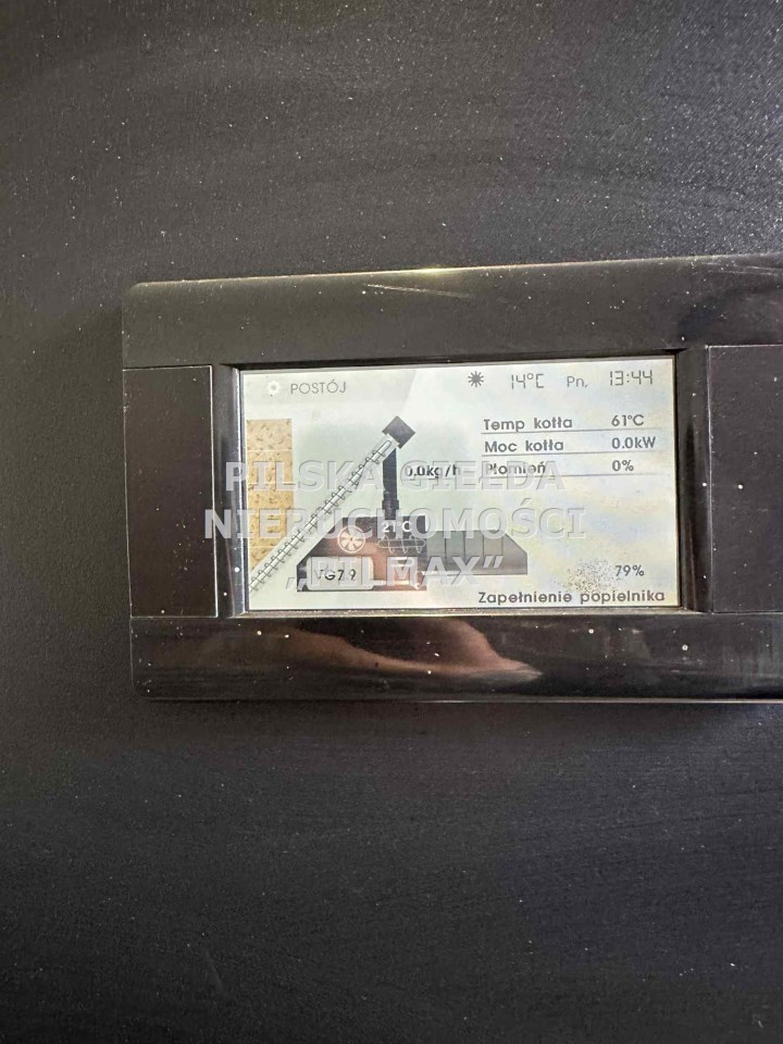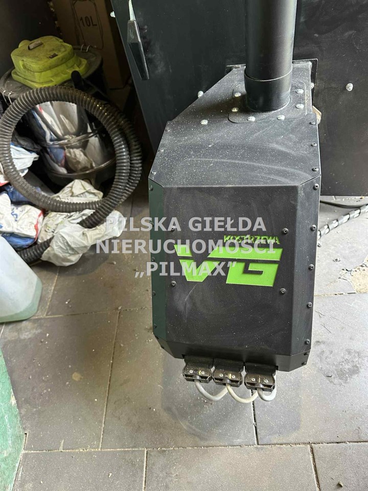 Ogrzewanie zapewnia nowoczesny, dwuletni piec Kostrzewa na pellet z zasobnikiem o pojemności 110 litrów, co gwarantuje ekonomiczne i ekologiczne użytkowanie.