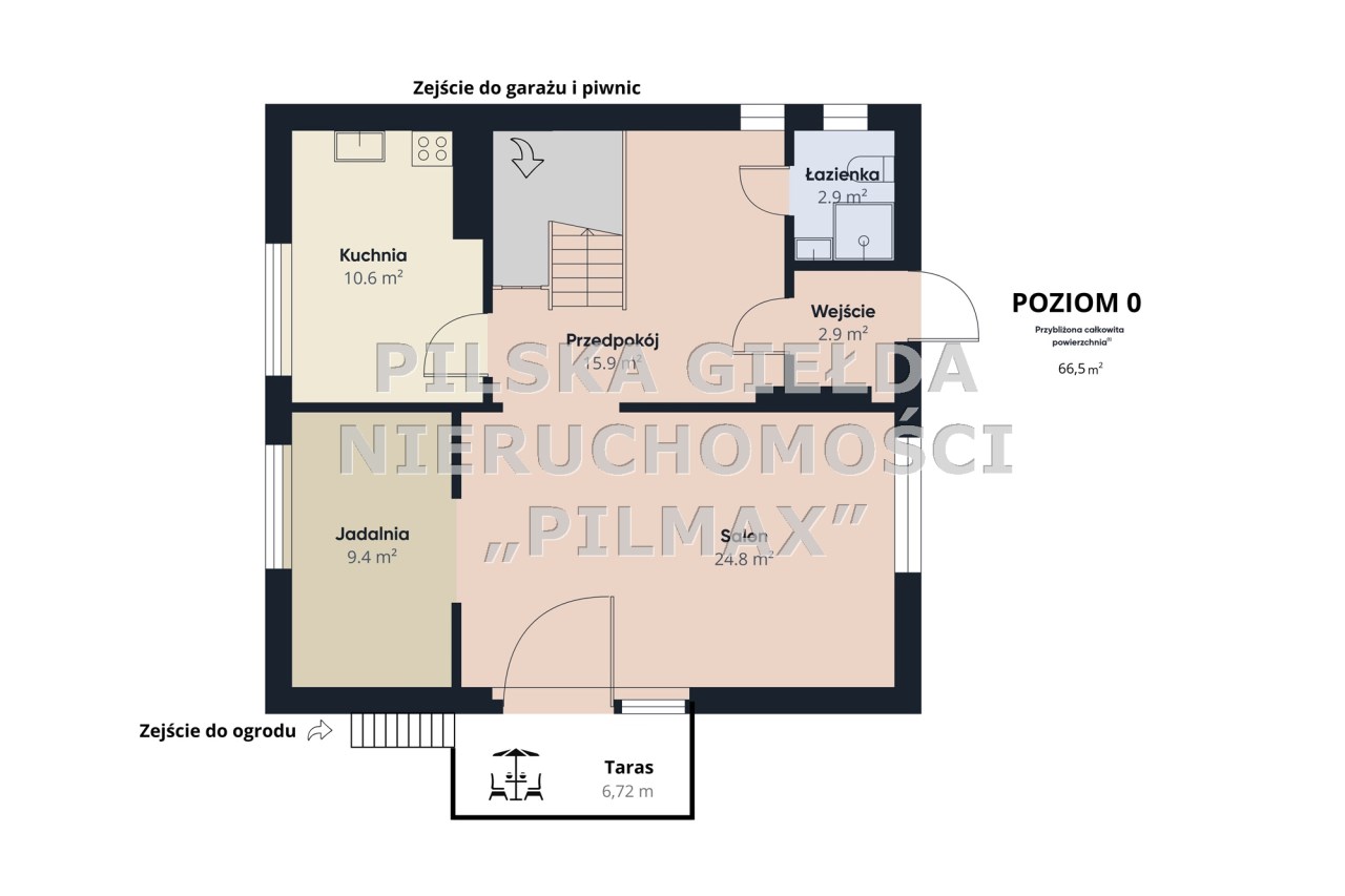• przestronny salon ok. 25 m² z tarasem, z którego schodzi się bezpośrednio do ogrodu,