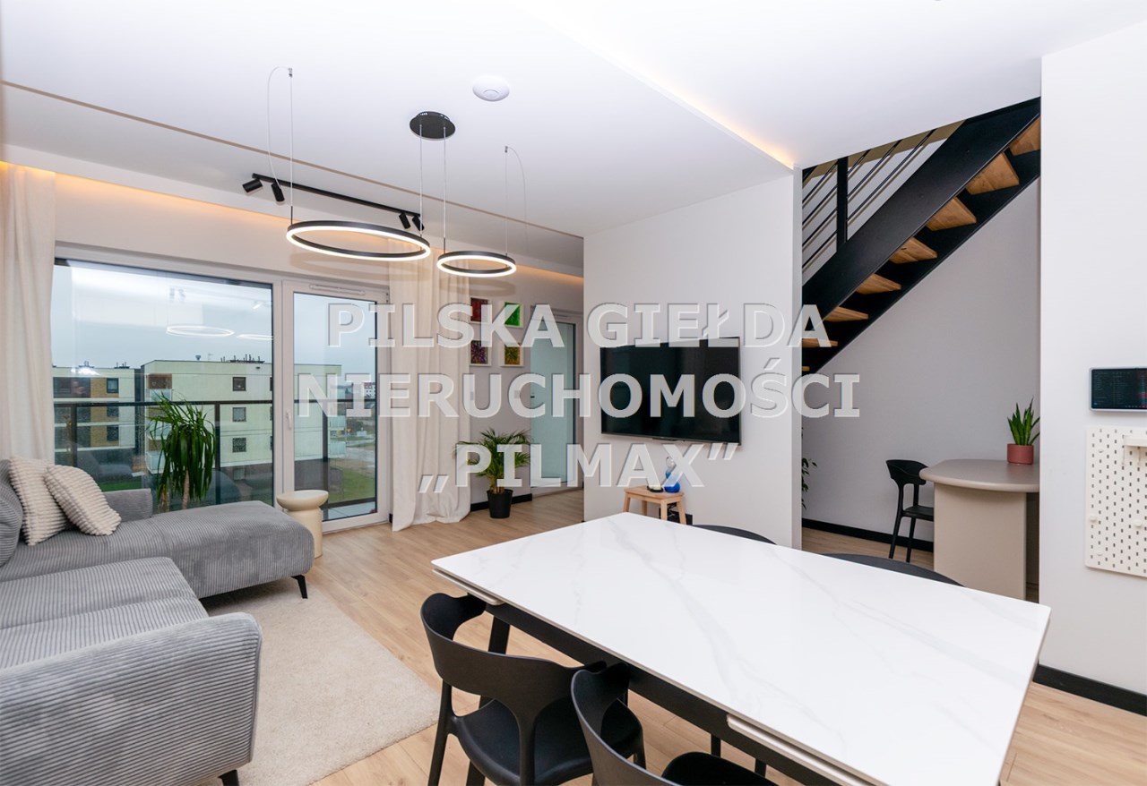 Nowoczesny apartament z antresolą, dwoma balkonami oraz imponującym tarasem.